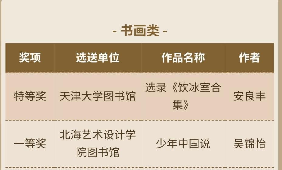 书画类获得一等奖1名、三等奖2名、优秀奖6名,具体如下: