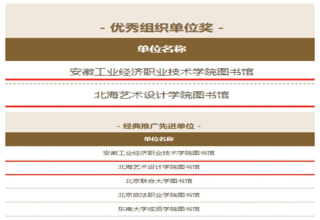 我馆还被评为经典推广先进单位并获得优秀组织单位奖