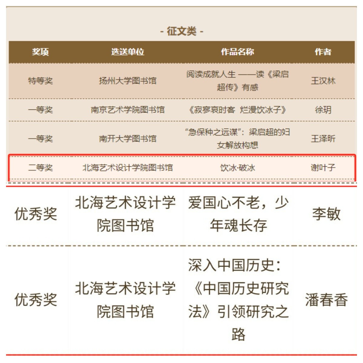 征文类获得二等奖1名、优秀奖2名,具体如下: