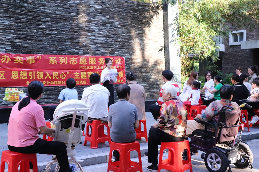 11月1日,我校大学生理论宣讲团结合“我为群众办实事”系列服务活动,深入结对共建的和兴社区橄榄苑,开展“理论宣讲进社区,思想引领入民心”主题宣传教育活动。