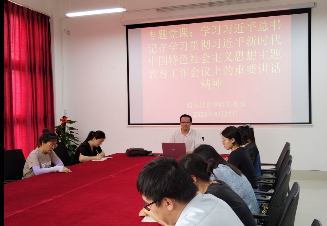 4月21日,通识教育学院党支部开展专题党课,集中学习贯彻习近平新时代中国特色社会主义思想主题教育工作会议上的重要讲话精神。