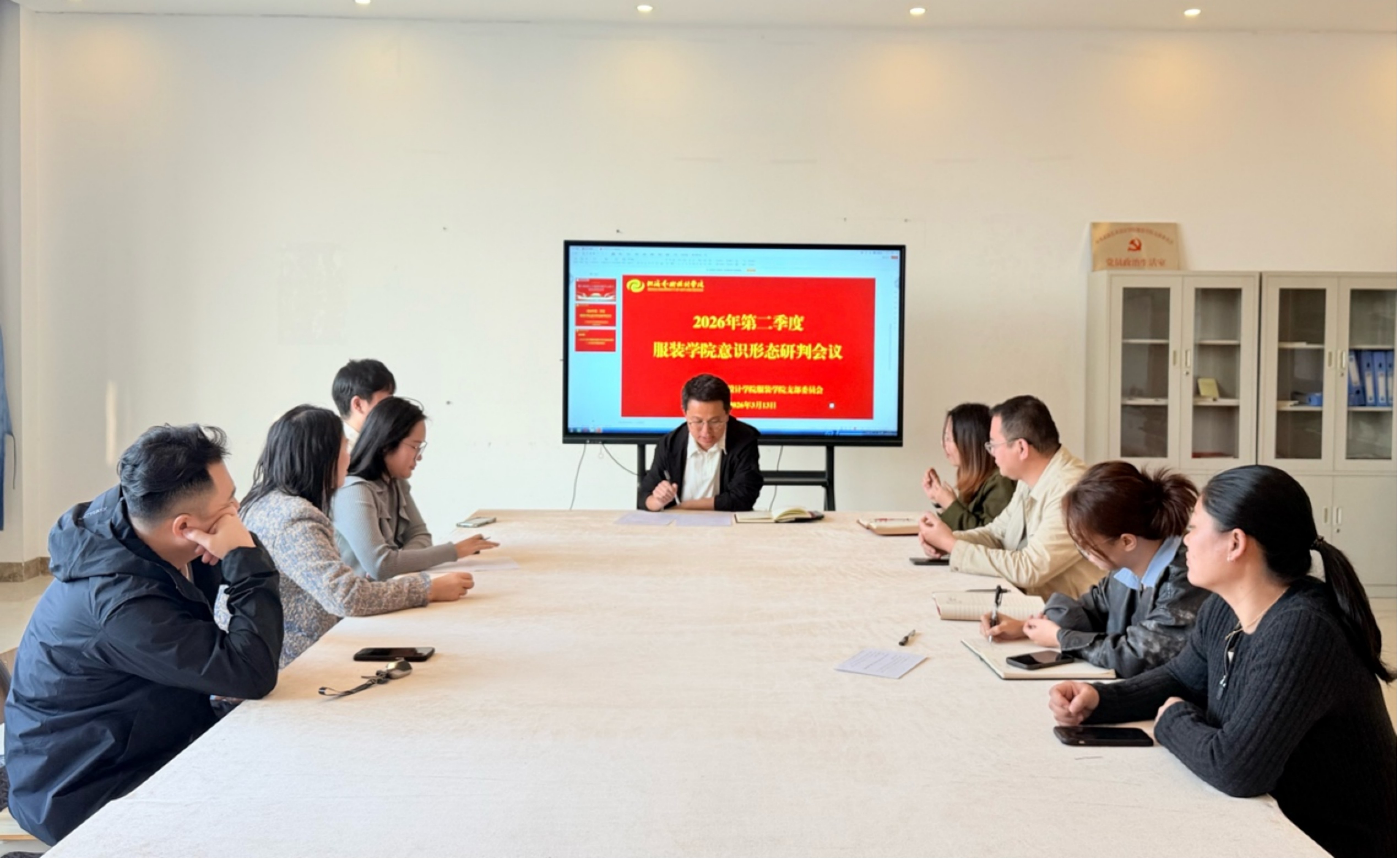为深入贯彻落实上级关于意识形态工作的决策部署,压紧压实意识形态工作责任制,筑牢校园思想防线3月13日,服装学院召开开学初2026年第二季度意识形态工作研判会议。会议由学院党支部书记曹永攀主持,学院领导班子及相关职能部门负责人参加会议。