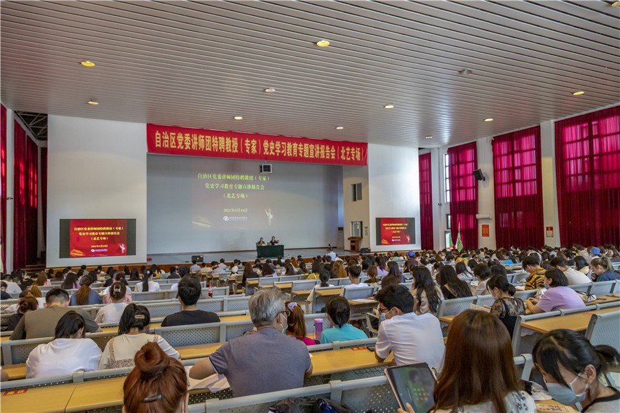 5月19日,自治区党委讲师团特聘教授专家陈洪涛来到北海艺术设计学院,开展党史学习教育专题宣讲报告,400多名师生到场聆听。
