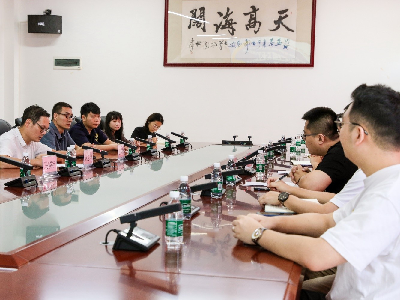针对这一问题,庞定坤书记作出回应。他先是简单介绍了北海艺术设计学院建筑与环境艺术学院的发展情况,接着表示建筑与环境艺术学院在教学方面具有两个显著特色,即“党建+专业”与“党建+科研”。通过将党建内容与教学内容相融合,强化思政教育,并围绕红色等主题进行创作,旨在培养出高素质的应用型优秀学生。随后,双方就一些教学与管理方面的问题展开了深入交流。
