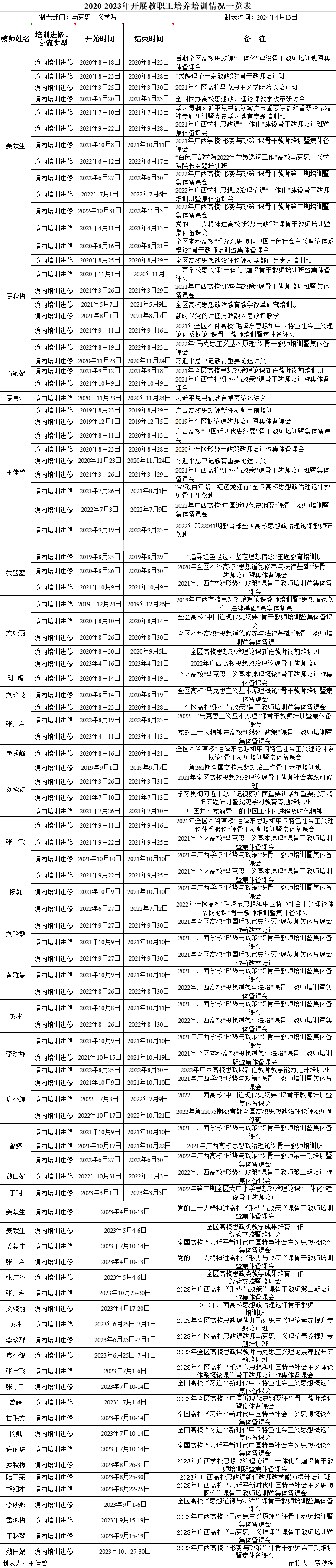 2024年马院教职工培训情况一览表