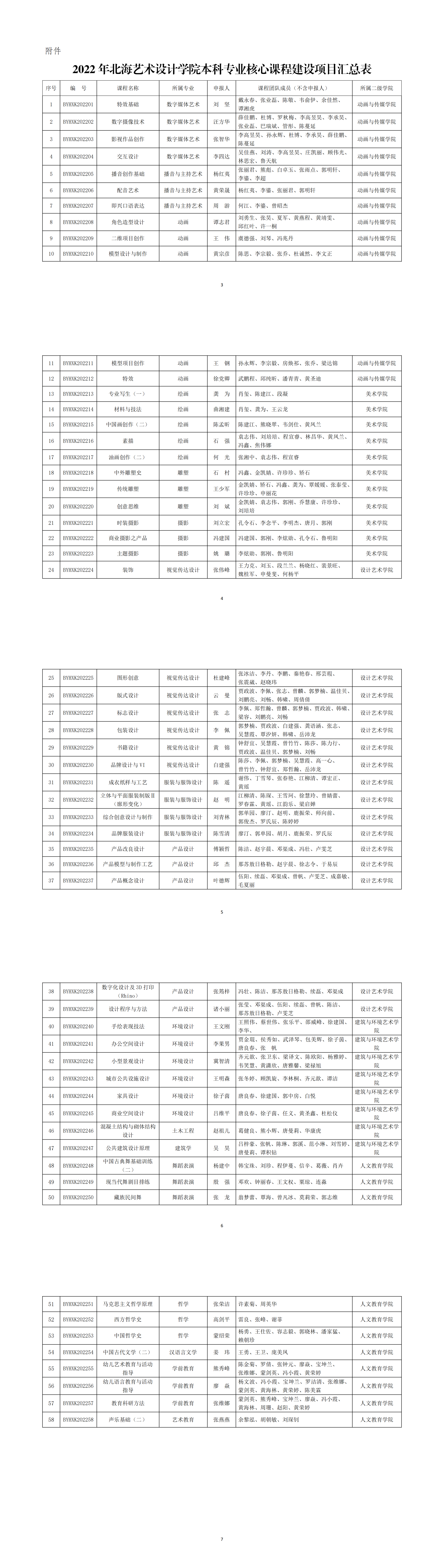 附件2022年北海艺术设计学院本科专业核心课程建设项目汇总表