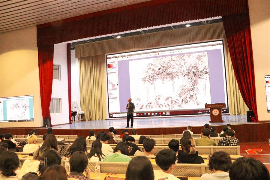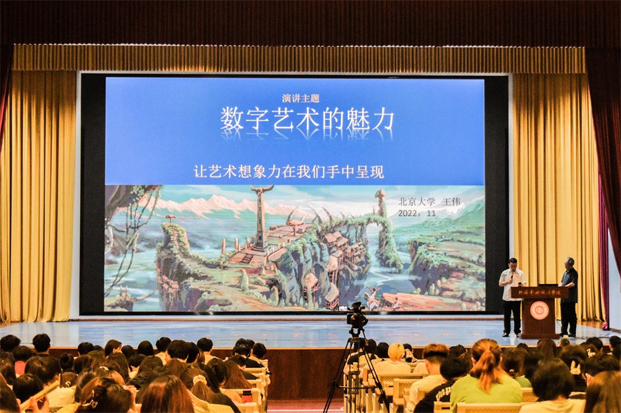 11月22日,于我校西区大礼堂,动画与传媒学院学院特聘教授、原北京大学软件与微电子学院教授王伟为师生带来了一场题为《数字艺术的魅力——让艺术想象力在我们手中呈现》的精彩讲座,共有500余名师生参加。讲座由学校动画与传媒学院副院长杜博主持。
