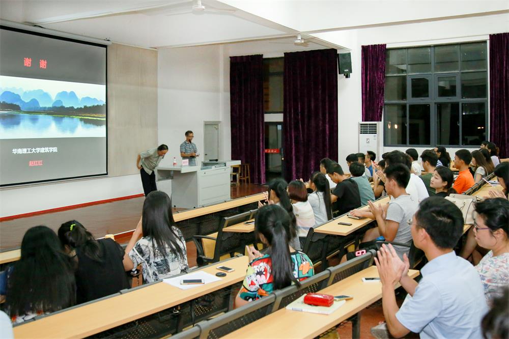 赵红红教授从中国城市化的进程、经济全球化的影响、东方人居思想、本土化的设计潮流、地域化的设计创新五个方面进行分析探讨,给在座师生展示了许多经典的案例,并就如何对本土文化进行传承和创新进行了诠释,提出了独到的观点和看法。在讲座中,赵教授指出现代建筑设计的不足,即设计缺乏创新,千城一面、千楼一面的现象层出不穷。同时赵教授通过广州南昆山十字水生态度假村细讲解了地域化建筑设计的特征,向我们阐述了现代建筑设计的发展方向,即在传承传统文化的基础上加以创新深化,融入现代化设计的元素。在最后,赵教授激励中国的建筑师要为走向世界做理论准备,给我院学生树立了新的奋斗目标。