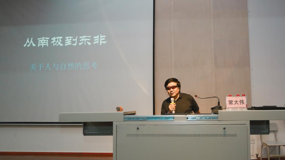 常教授与大家分享了他本人从南极到非洲旅途中的所见所闻和内心感受,以及由此引发对人与自然关系的思考。常教授说,全世界的动物都是处于和谐平衡的状态,能够适应环境发展的就是良性的,不能适应的就会被自然淘汰,由此形成了生物链。
