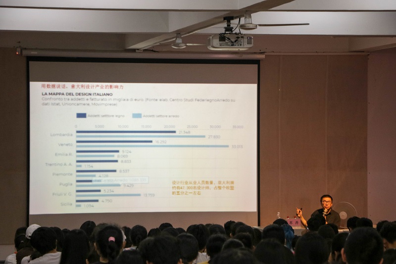 讲座开始,苏丹教授以意大利历史切入主题,向我们展示意大利独特的设计理念和设计风格,让我们了解到意大利人对设计的感悟,将意大利文化渗透到设计之中,让我们深深感到震撼,也颇受启发。苏丹教授为大家讲述了“意大利设计”为什么被世界上许多设计师所追捧,并提出“意大利设计”在世界占有举足轻重的地位。接着苏丹教授将意大利的文化与中国文化相比较,得出文化对艺术的熏陶是潜移默化的,使得在场师生对于意大利的设计、文化有了进一步的了解与认识。