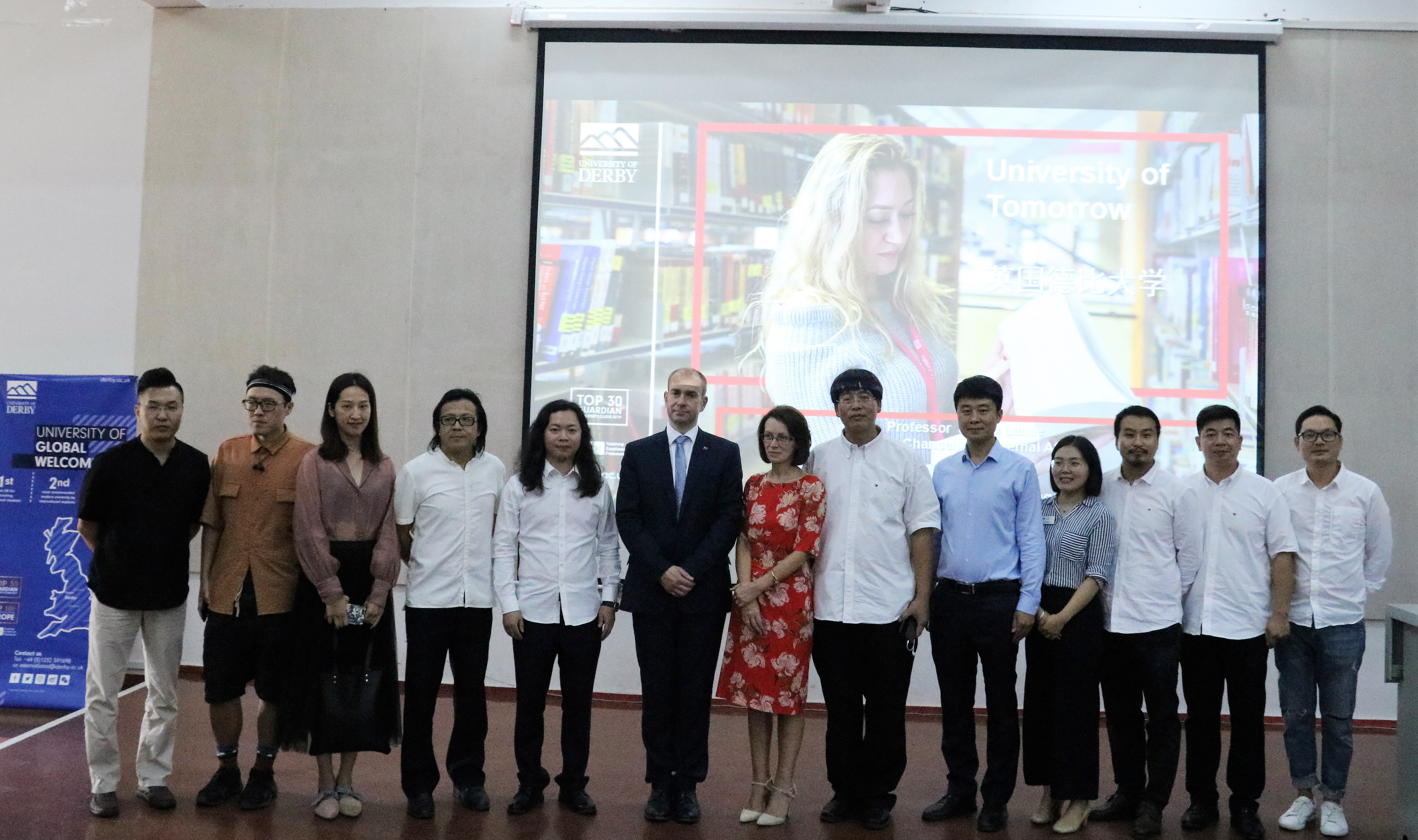 接下来,同样来自德比大学的副校长Keith先生为大家介绍了德比大学的艺术设计、动画、音乐等学科。他希望帮助学生们发现其天赋,培养学生对艺术要有热情、有上进心和不惧挑战的勇气。讲述了德比大学教学的独特之处在于,不管哪个专业,学生和老师都是伙伴关系。让学生学习的同时学会承担压力,从而铸造更好的自己。