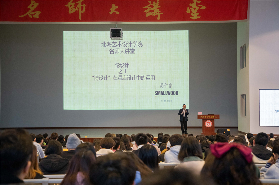 2019年12月19日上午于我校西校区大礼堂,美国SMALLWOOD全球合伙人苏仁豪先生为我校师生带来了一场题为《论设计》的精彩讲座,吸引了环境艺术学院广大师生前往聆听,现场坐无虚席。