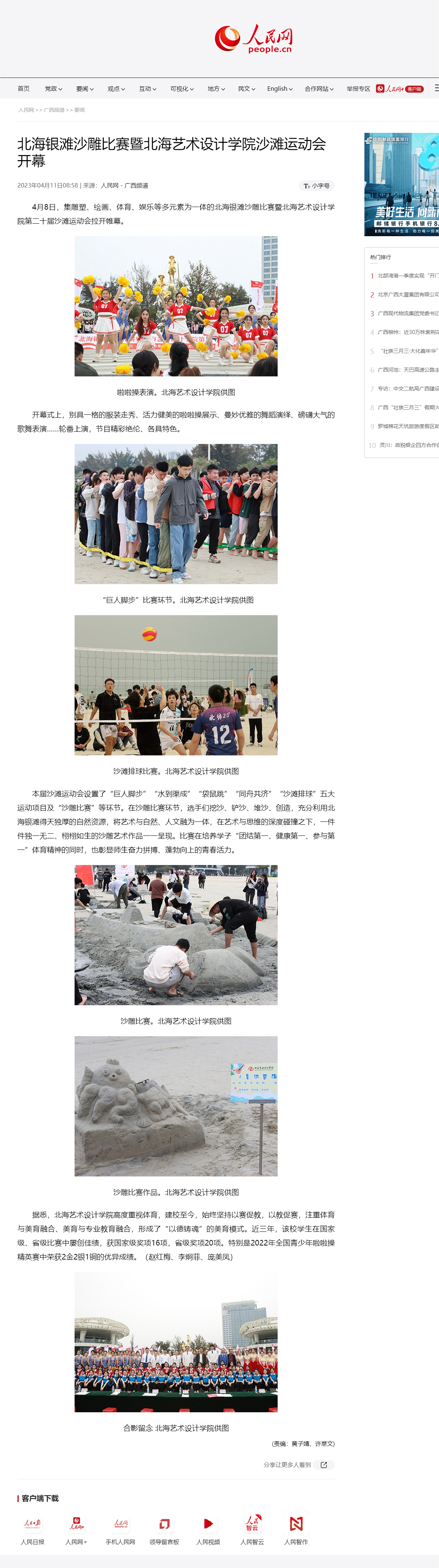 人民网:北海银滩沙雕比赛暨北海艺术设计学院沙滩运动会开幕