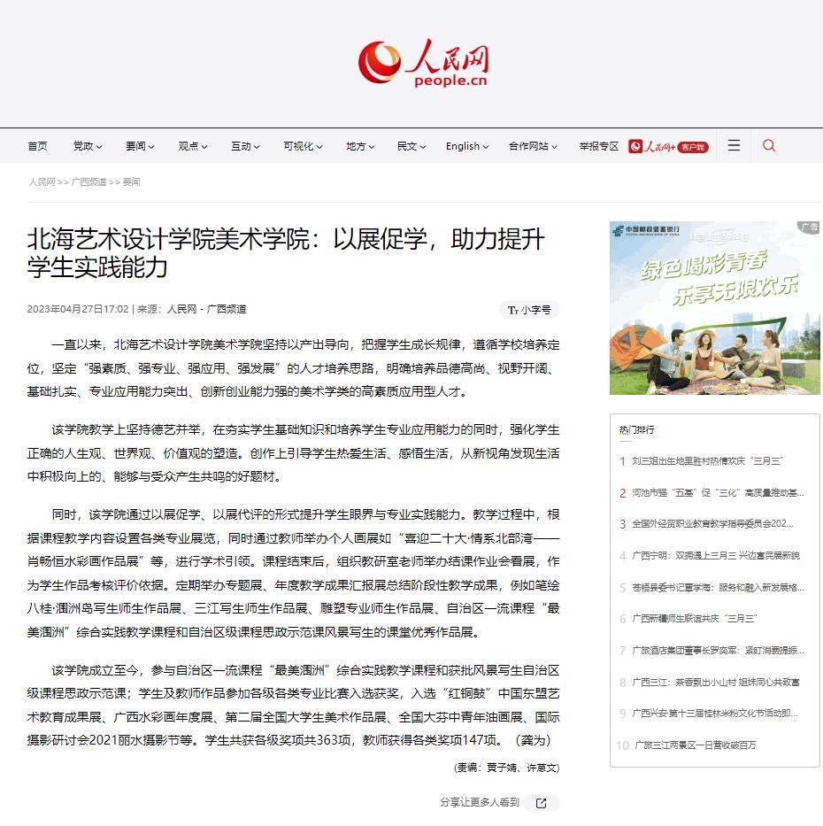 人民网:北海艺术设计学院美术学院以展促学,助力提升学生实践能力