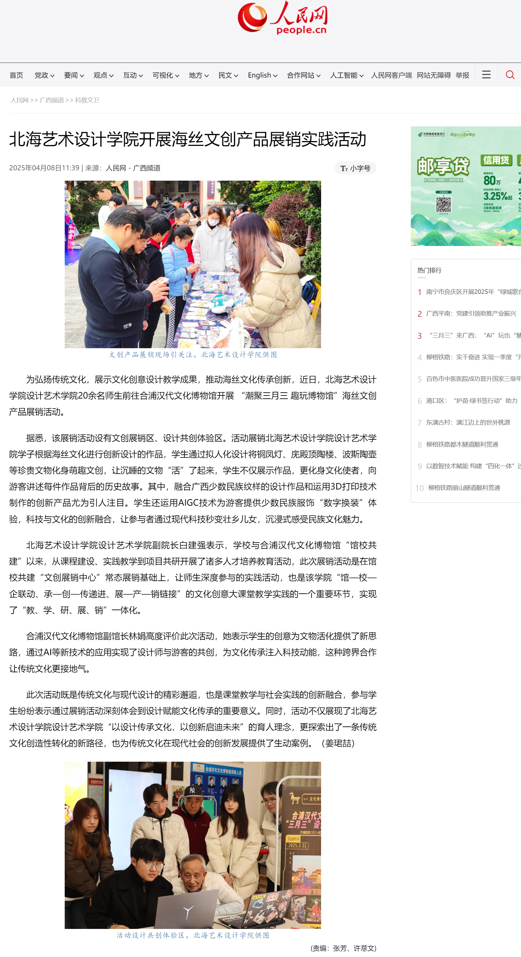 人民网:北海艺术设计学院开展海丝文创产品展销实践活动