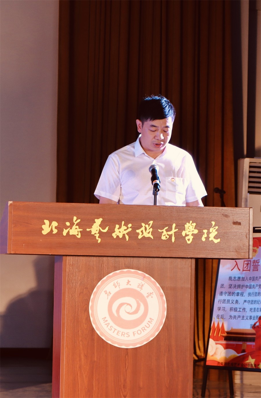 团委书记唐良春同志带领新老团员进行入团宣誓仪式,铿锵有力的誓词在礼堂中久久回荡,这不仅仅是简单的誓言,更是砥砺奋斗的决心。希望每一位团员在未来能够不负胸前的那一枚团徽,成为一个忠于国家、忠于党、忠于人民的优秀团员。