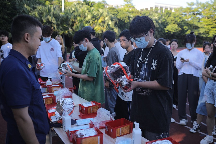 课堂教学结束后,我校在西校区操场分批依次进行消防逃生演练,以四个区域分别进行消防教育实际操作讲解,演练内容丰富,既有理论授课,又有疏散、灭火器灭火、穿戴过滤式消防自救呼吸器、灭火毯使用、连接水带、穿越模拟火场烟道充气帐篷、心肺复苏等逃生、自救互救技能实际操作,进一步巩固了师生对逃生工具和消防器械的使用技巧,实操训练更是大大提升了师生应对突发火情的处理能力。