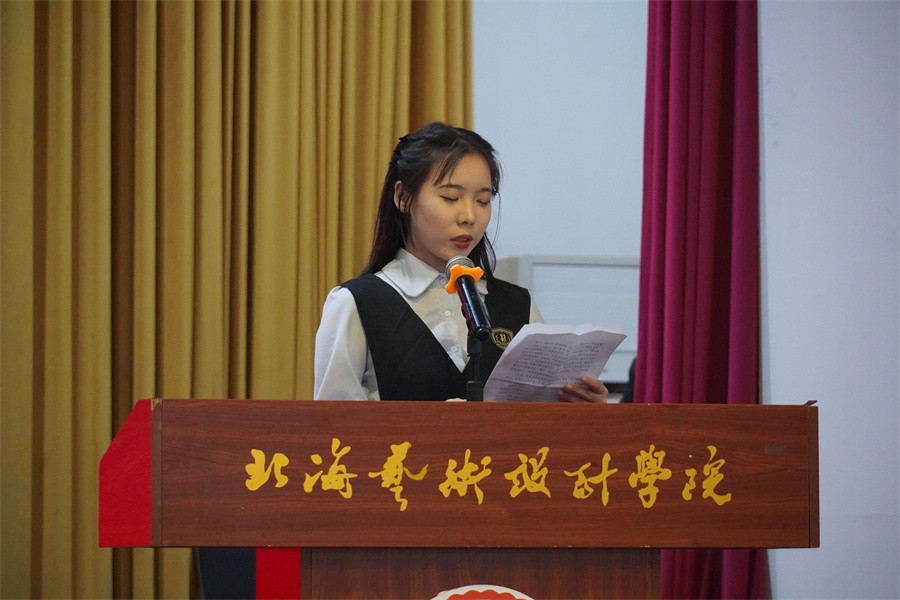 校长卢新华在致辞中代表学校向荣获表彰的同学表示热烈的祝贺,向长期以来支持学校建设发展、关心同学们成长成才的教职工表示衷心感谢。他表示,此次表彰大会是对北艺学子过往成绩的总结,更是要激励广大学子汲取感恩奋进的力量,坚定信念,不断努力超越,再创新的优异成绩。近年来,学校在各方面工作上取得了众多突出成绩和优秀荣誉,得到了社会广泛认可和普遍赞誉。他勉励广大优秀学生代表发挥典范作用,树德养行立大志,勇担新时代使命,他对同学们提出三点期望:一是要树德养行,加强道德修养。国无德不兴,人无德不立。新时代青年应该注重培养良好的道德品质和行为习惯,明大德、守公德、严私德,坚定共产主义理想信念,守护人人有责的社会公德,继承中华民族传统美德,坚守修身正己的个人品德,努力成长为新时代的优秀先锋。二是要立大志,勇担时代使命。人无志不立,树无根不长。要树立前进的目标和动力,把小我融入祖国和人民的大我中,胸怀祖国,心系人民,树鸿鹄之志,立远大理想,并通过脚踏实地,笃行不殆,不断努力奋斗去实现远大的理想,走出更有价值的人生之路。三是要学本领,充实能力素质。大学是苦练本领和技艺、增长才干的黄金时期,要在珍惜尺寸光阴中学到真本事、增长真才干,要发扬北艺“勤学求新”的学风,静心博览群书,悟道明心,积极投身实践,不断提升综合素质能力,用创新把握时代脉搏,用奋斗彰显新一代大学生靓丽的青春风采。卢新华校长希望广大学子站在学校新的历史起点上,立大志、明大德,坚定信心、笃行不怠、奋进而上,鼓足不畏艰险、攻坚克难的勇气,激发昂扬向上、奋发有为的青春锐气,坚定不移朝着民族复兴的美好明天奋进。