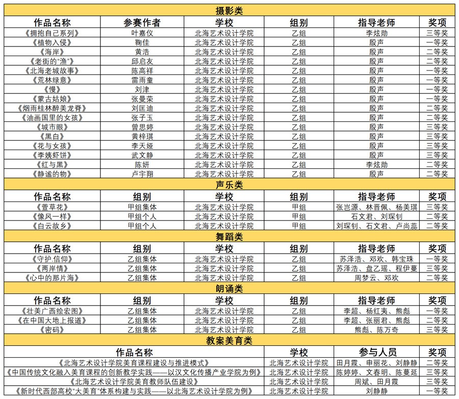 近日,由广西壮族自治区教育厅主办的第七届大学生艺术展演活动落下帷幕,对获奖名单进行了公示。我校师生斩获29个奖项的佳绩,其中一等奖8项,二等奖11项,三等奖10项。