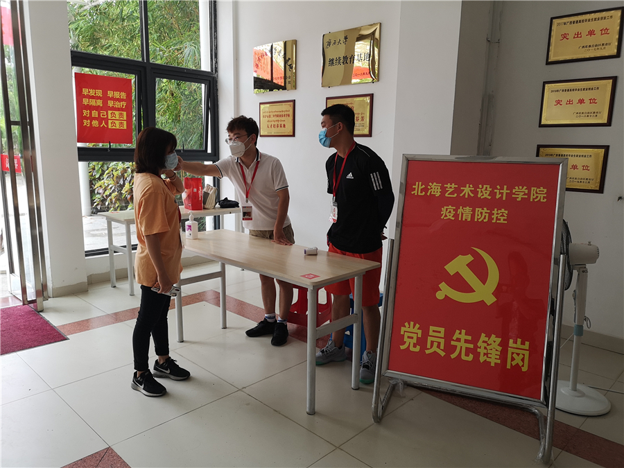在学生返校疫情防控工作中,处处活跃着党员教师的身影,他们不畏烈日暴晒,尽心尽责严把每一道检查关,守护好全体北艺师生的健康与安全。一个支部就是一个战斗堡垒,一名党员就是一面旗帜。北艺党员教师听从党的召唤,在平凡的岗位上默默工作,以实际行动践行了党员的初心和使命,让党旗在防控疫情斗争第一线高高飘扬。