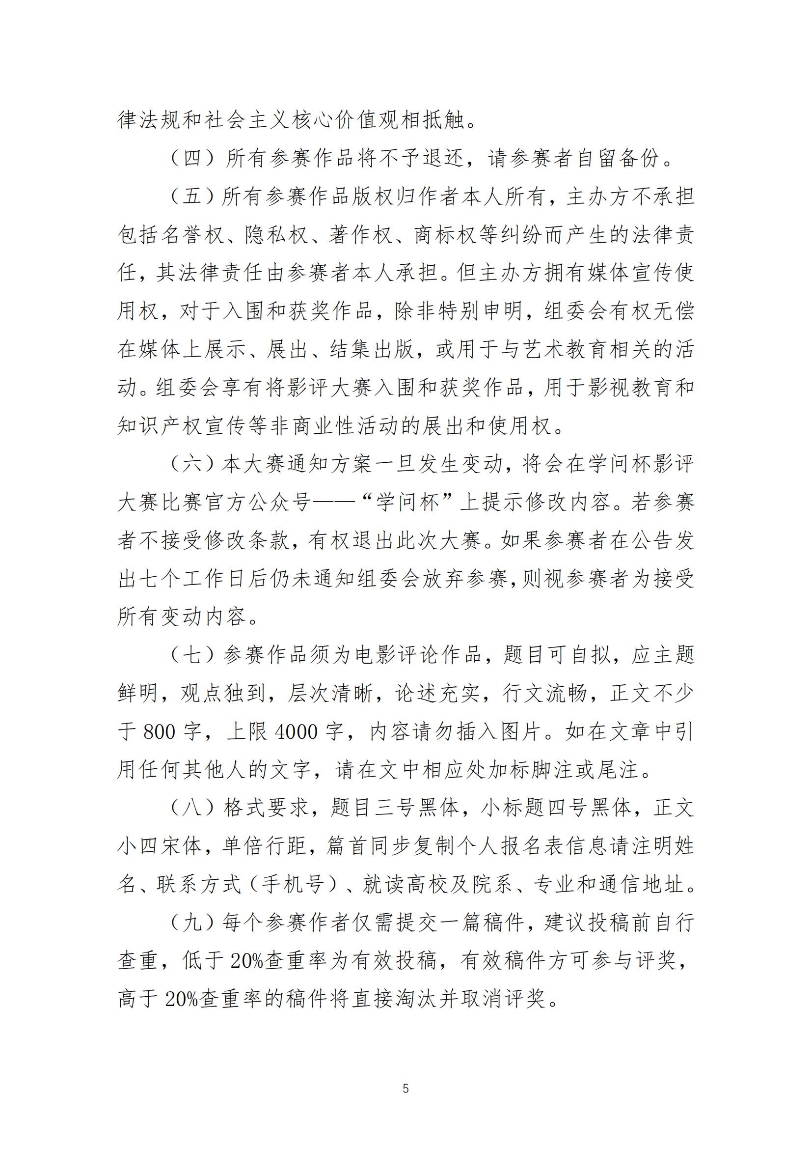 (四)决赛:决赛以最终公布时间为准,决赛采取现场观影写评论的方式进行,评委会评出获奖作品并进行现场颁奖,每所学校不超过5人进入决赛。