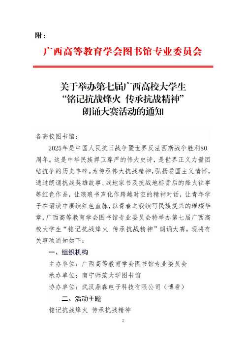关于组织参加第七届广西高校大学生“铭记抗战烽火 传承抗战精神”朗诵大赛活动的通知
