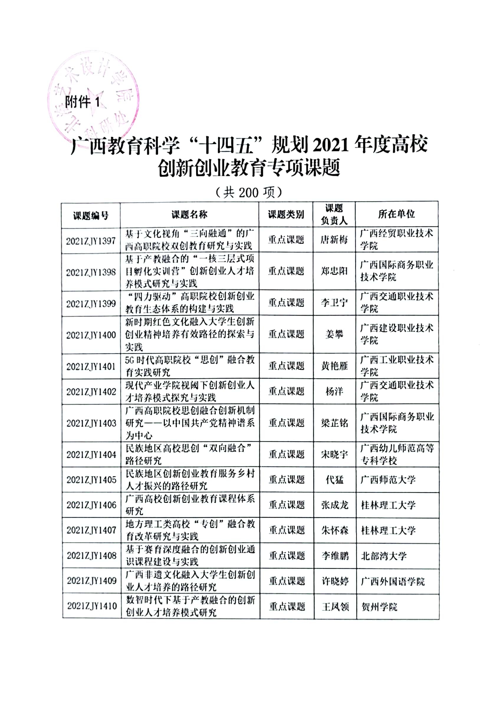 2021年“十四五”规划高校创新创业教育、高等教育国家化专项课题立项通知