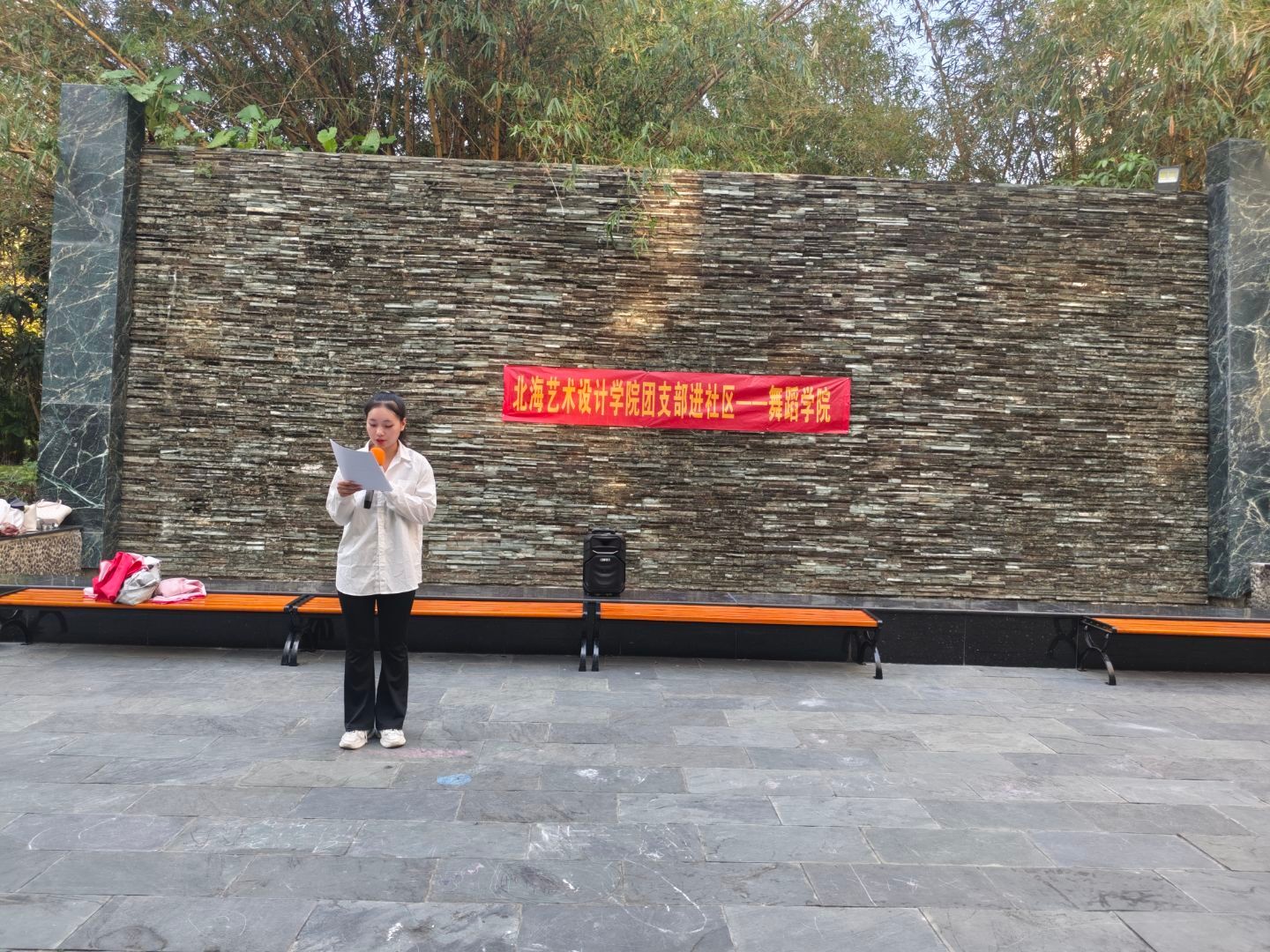 本次团支部进社区活动以舞蹈为载体,既弘扬了新时代雷锋精神,更以文艺之力,绘就社区环保新画卷,为构建绿色、和谐社区注入了青春活力。未来舞蹈学院也将深入挖掘更多艺术表现形式,让绿色理念和雷锋精神以更丰富多元的方式进入寻常百姓家中。(舞蹈学院/摄)