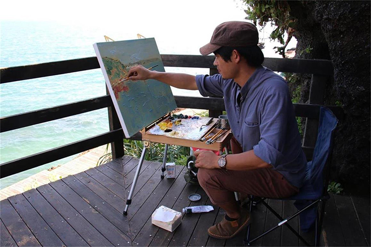 涠洲岛海蚀、海积及溶岩景观奇特,海水碧蓝见底,海底活珊瑚、名贵海产瑰丽神奇,海蚀火山港湾奇特优美,沙滩迷人,三婆庙、圣母庙和同治年间的天主教堂等建筑各具特色……这些自然、人文景观都为我院学生写生提供了十分丰富的素材,激发了学生的创作灵感和创作优秀作品的机会。