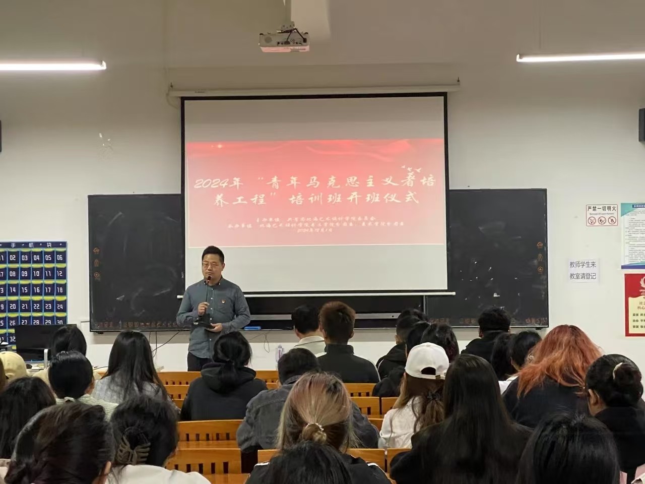 为深入贯彻习近平新时代中国特色社会主义思想,进一步加强对青年大学生的思想政治引领,使各位青马学员成长为中国特色社会主义事业奉献的合格建设者和可靠接班人。12月1日,由书法学院与美术学院联合举办的2024-2025学年“青年马克思主义者培养工程”培训班开班仪式在西校区艺术楼314顺利举行。