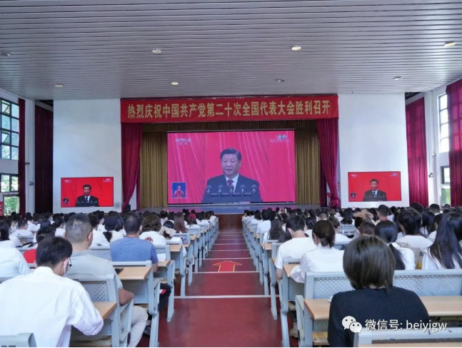 10月16日上午10点整,中国共产党第二十次全国代表大会在北京人民大会堂隆重开幕,中共中央总书记、国家主席、中央军委主席习近平代表第十九届中央委员会向大会作报告。学校党政领导班子、全体中层领导干部、党员代表、入党积极分子和学生干部1000余人在学校主会场大礼堂和分会场伦理楼107教室集体收看大会实况。其他师生通过电视、网络、广播、手机客户端等多种形式收听收看大会开幕会现场直播盛况,第一时间学习领会大会精神。