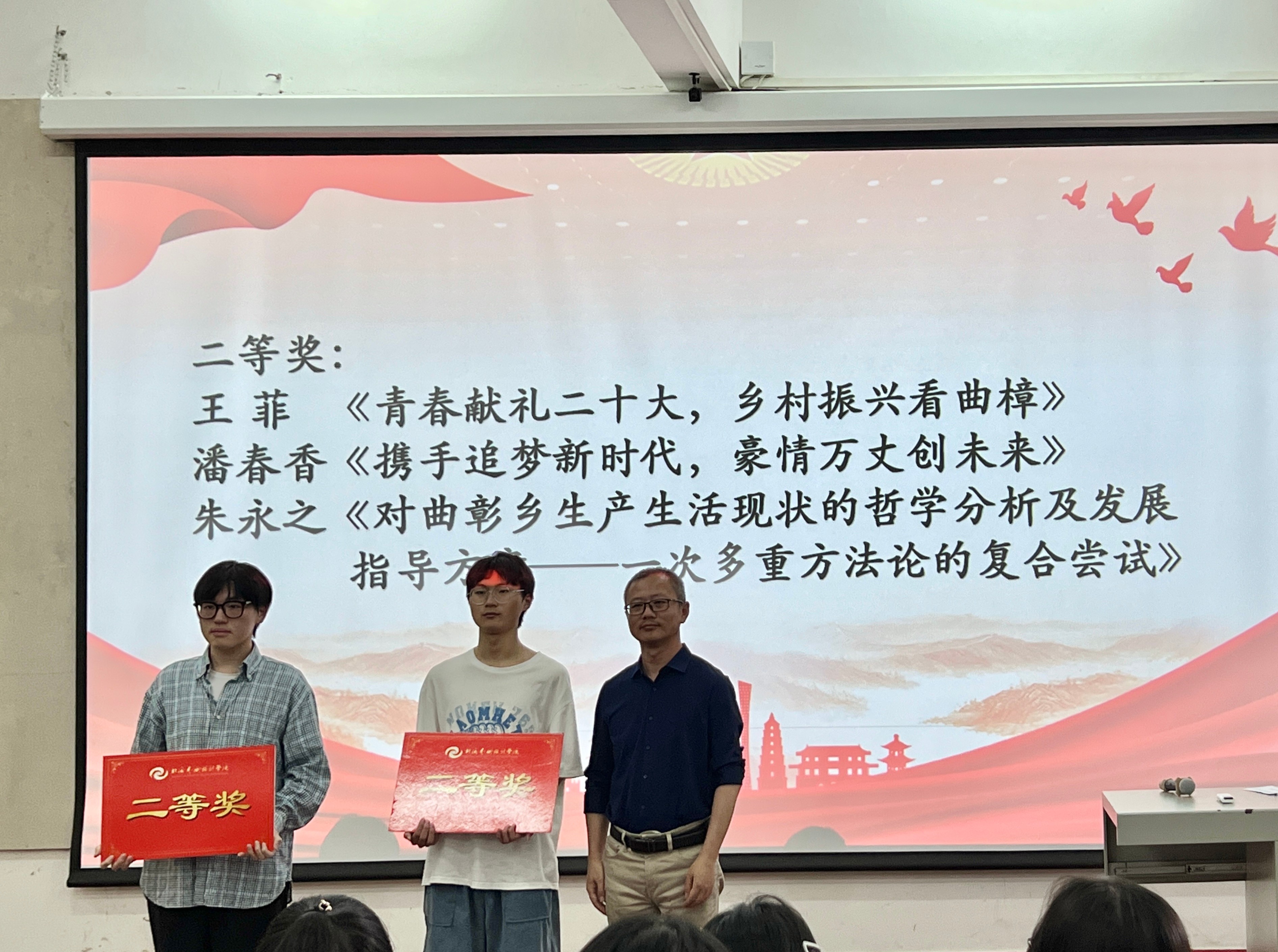 最后,学院领导与曲樟乡政府代表为获奖同学颁发一、二、三等奖以及优秀奖,并与获奖学生合照