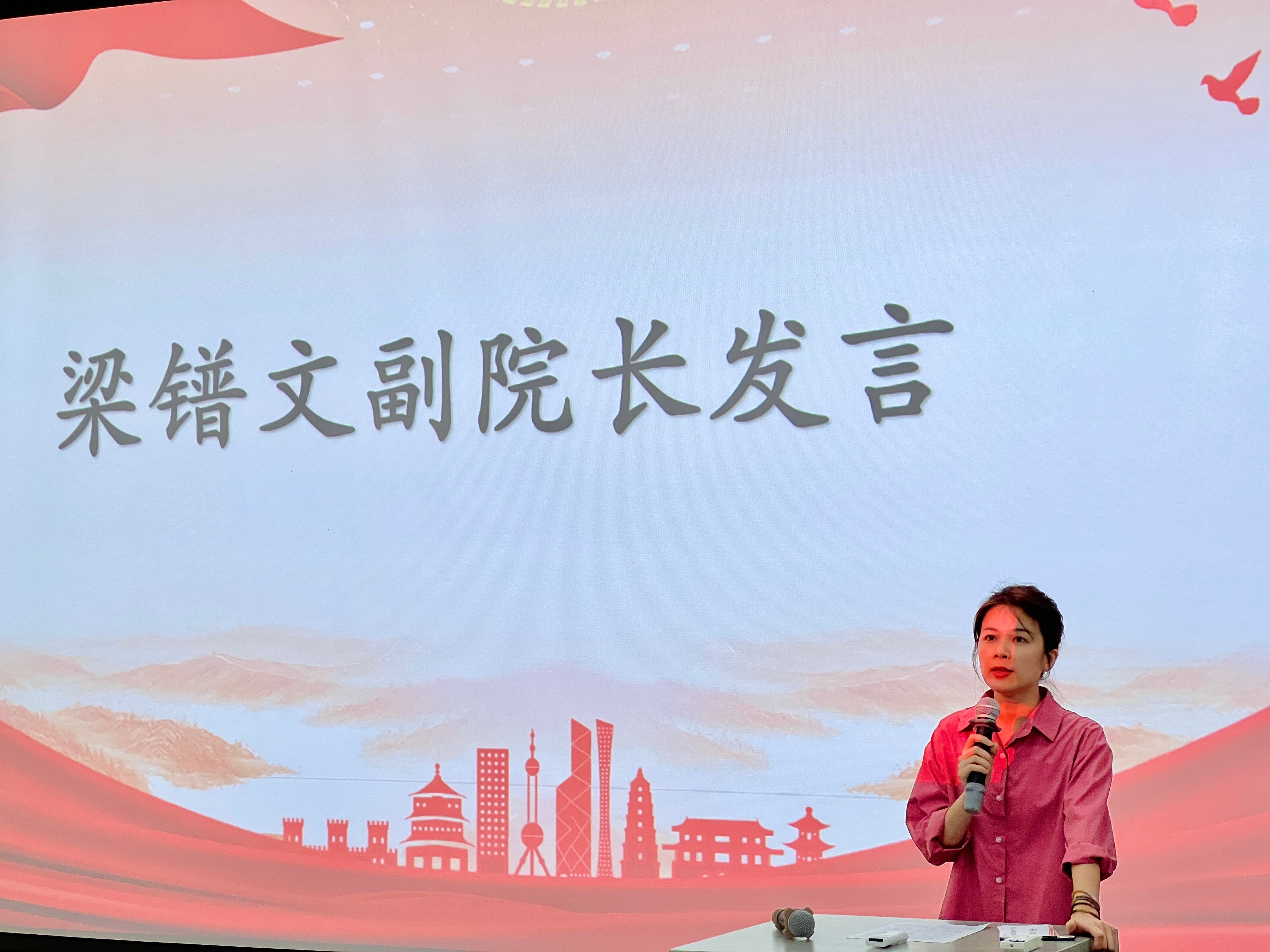 颁奖典礼开始前,梁镨文副院长进行发言,她指出在产学研活动当天,我师生兵分两路,艺教、学前、舞蹈专业的代表教师与学生开展乡村文艺表演、助教活动;汉语言文学、哲学的代表教师与学生深入当地乡村振兴特色果园示范基地、曲樟乡库区、爱国将领陈铭枢故居开展专业调研。返校后,人文教育学院结合专业特色举办了“青春践行二十大,砥砺报国实践行”北艺青年助力曲樟振兴宣传作品征集大赛,我校从调研报告、宣传视频、新媒体推文三部分进行作品征集,在这次活动中,汉语言文学和哲学的学生表现出高度的参与热情,将课堂所学和社会实践相结合,充分展现自己的专业素养。她表示,未来将有更多的曲樟乡实践活动,希望学生能再接再厉,不断探索创新,在社会实践中实现自身价值。