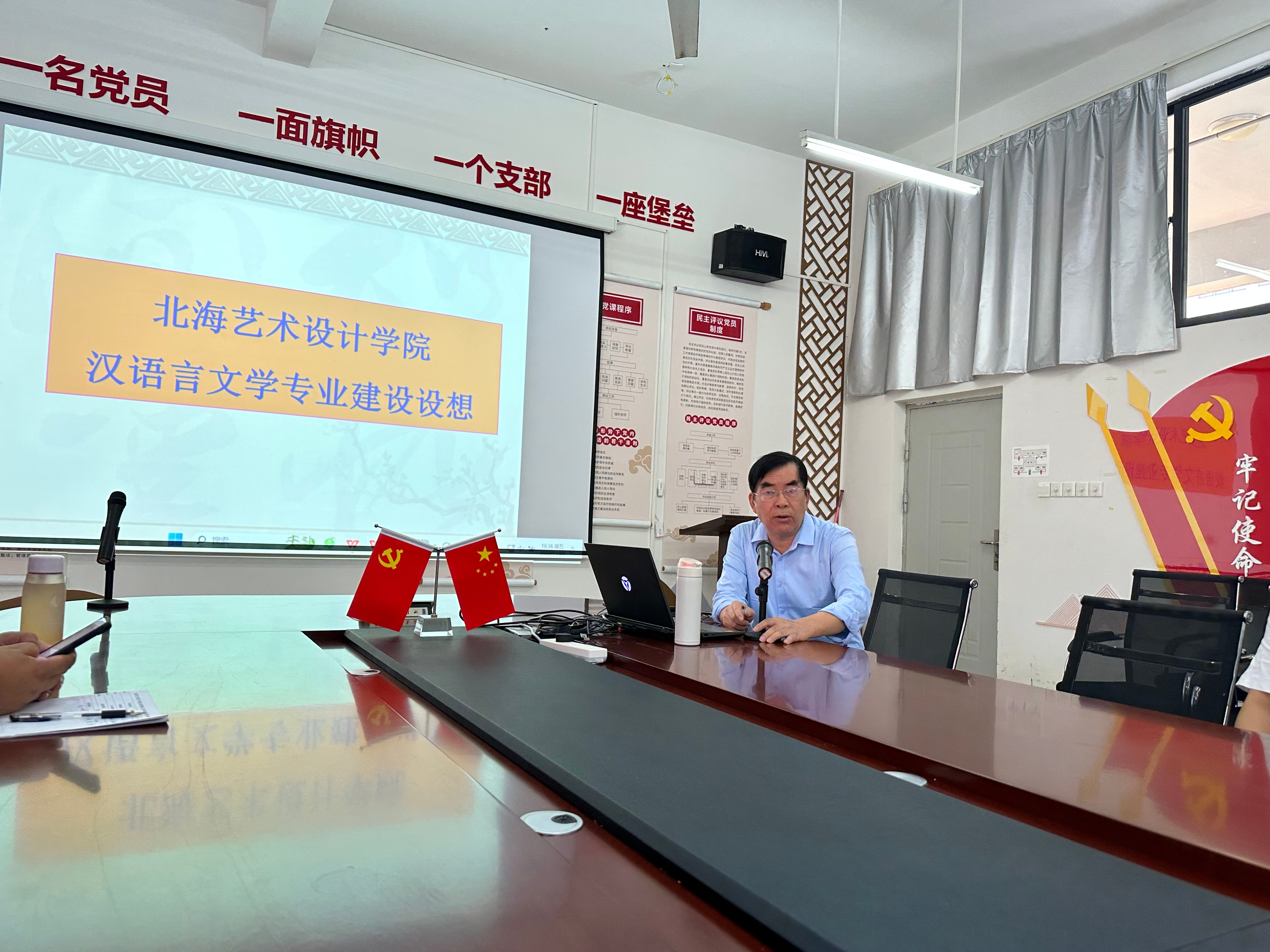 会议第一项,由汉语言文学专业学科带头人黄宇鸿教授就汉语言文学专业的相关情况进行发言。黄宇鸿教授就师生人数、教学和科研、学生升学和就业等基本情况作了介绍。针对汉语言文学专业在工作出现的问题,他建议,进一步落实立德树人的教育理念,把思政教育融入专业课程教学中;结合人才培养定位,强化学生的自主学习能力和应用能力;加强师资队伍建设,鼓励教师参加青教赛和创新性课程建设;重视科学研究,组建科研团队;助推校园文化建设和地方文化发展,力求人才培养上一个台阶。黄教授指出的问题一针见血,提出的建议切实可行,与会教师表示受益匪浅。