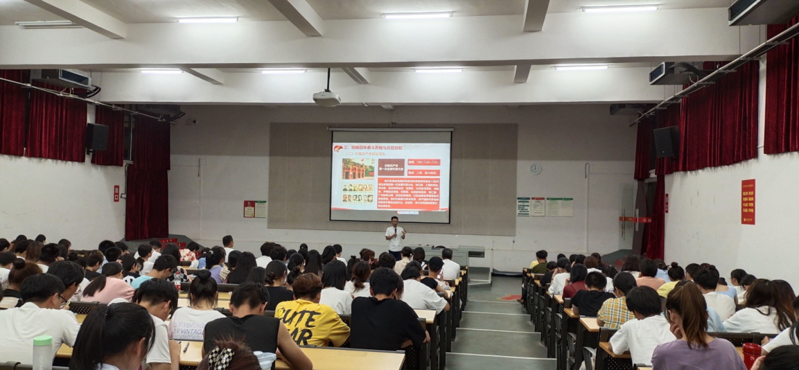 为深入学习贯彻习近平总书记“七一”重要讲话精神,进一步兴起学习宣传贯彻的热潮,全面提升广大师生的思想政治素养和党员干部的党性修养,推动党史学习教育走深走实,为创建西部一流艺术设计学院和民办高校党建工作典范贡献力量。根据学院党委的统一安排,10月4日晚上,学校学习贯彻习近平总书记“七一”重要讲话精神讲师团成员、第四党总支书记刘承初在公德楼107教室作学习习近平总书记在庆祝中国共产党成立100周年大会上的重要讲话精神专题宣讲会,对习近平总书记“七一”重要讲话进行了深入解读。会议由人文教育学院院长熊秀峰同志主持,人文教育学院教职工、学生代表共计199人参加会议。