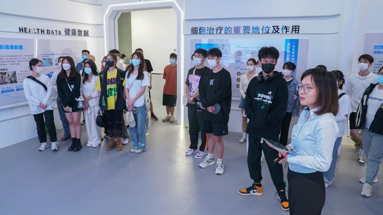 师生在纽博生物公司负责人的带领下参观纽博生物展厅