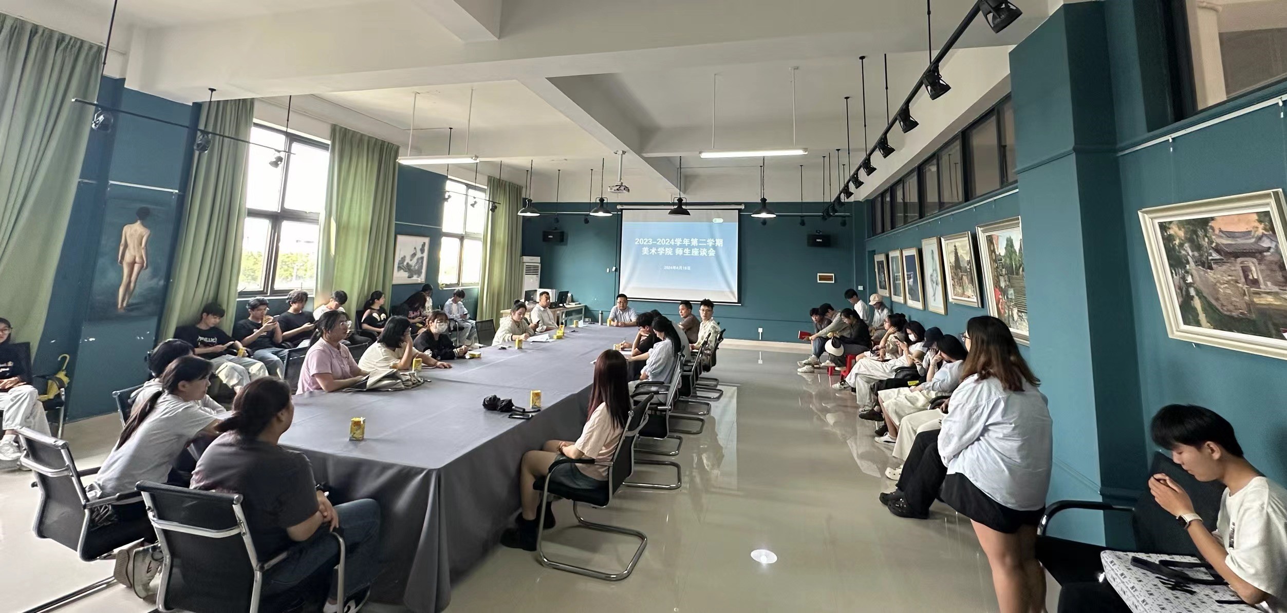 为进一步了解学生思想动态、学习状态与在校生活情况,解答学生在成长、求学和求职路上的疑惑,加强师生之间的沟通,美术学院于2024年4月16日下午16:00,在艺术楼313召开2023-2024学年第二学期师生座谈会。美术学院副院长龚为、副书记鲁明阳以及各专业教研室、学工办、教务办负责人与美术学院全体信息员济济一堂,展开本次座谈交流。