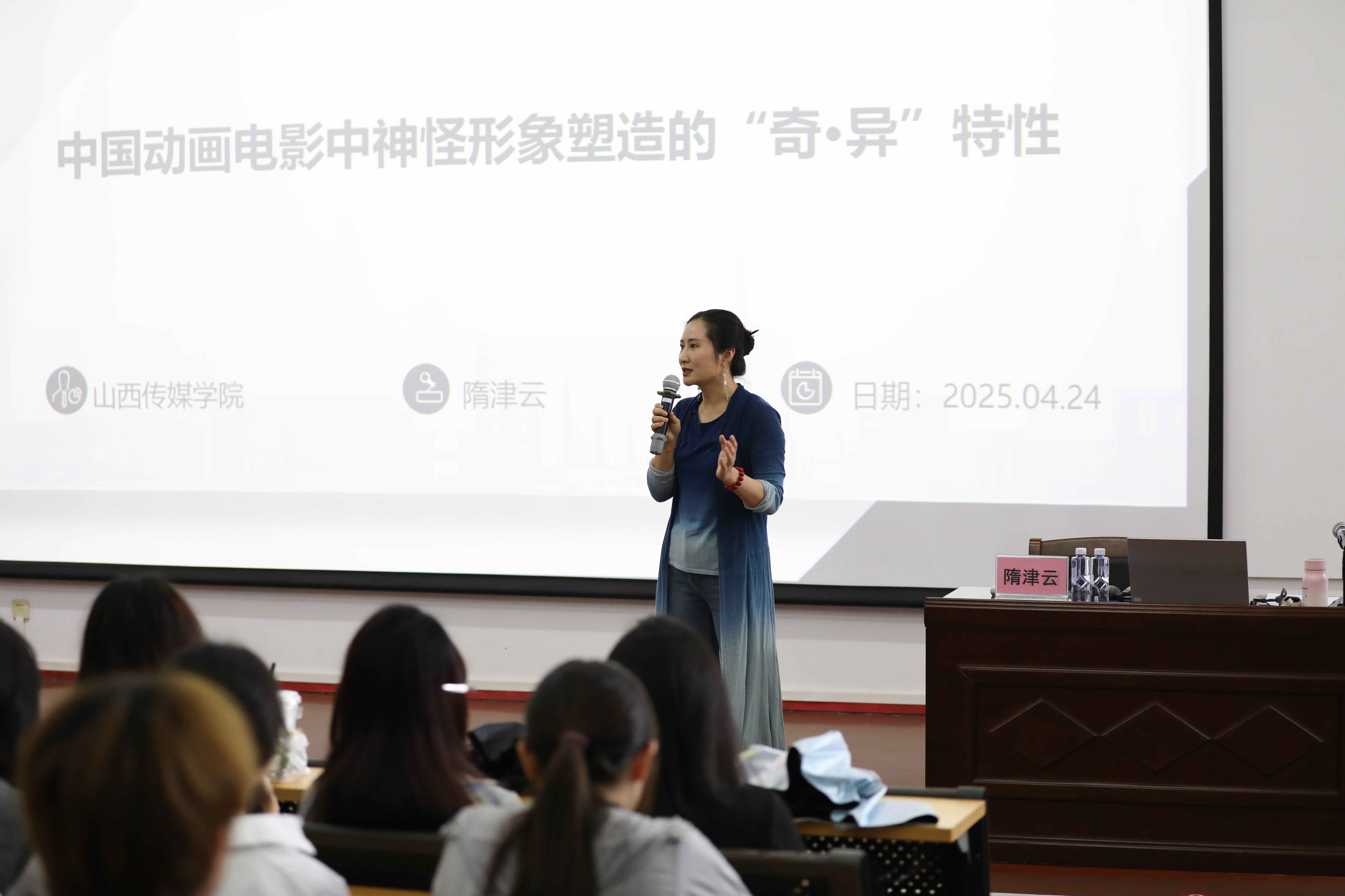 为激发学生对中国传统文化的认知、强化文化传承创新意识、提高艺术鉴赏水平,4月24日,动画与传媒学院邀请山西传媒学院隋津云教授,于西校区伦理楼107成功举办了一场题为《超离时空恣意想象的“奇”与“异”——中国动画电影中神怪形象的艺术特性探析》的专题讲座。本次讲座由动画与传媒学院院长孙永辉主持。