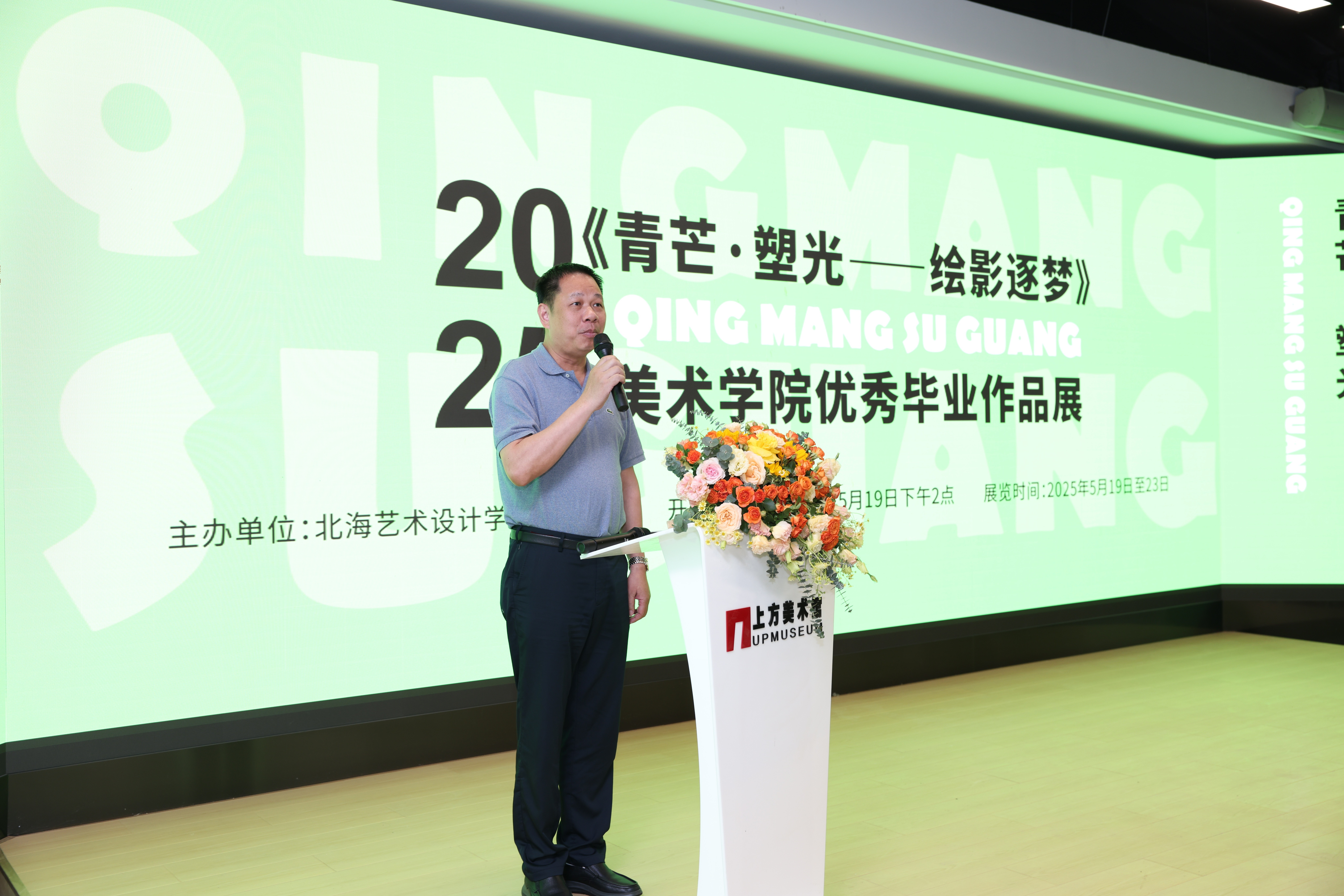 开幕式的最后,由北海艺术设计学院党委书记覃宪儒宣布《青芒·塑光——绘影逐梦》北海艺术设计学院美术学院2025优秀毕业作品展正式开幕。