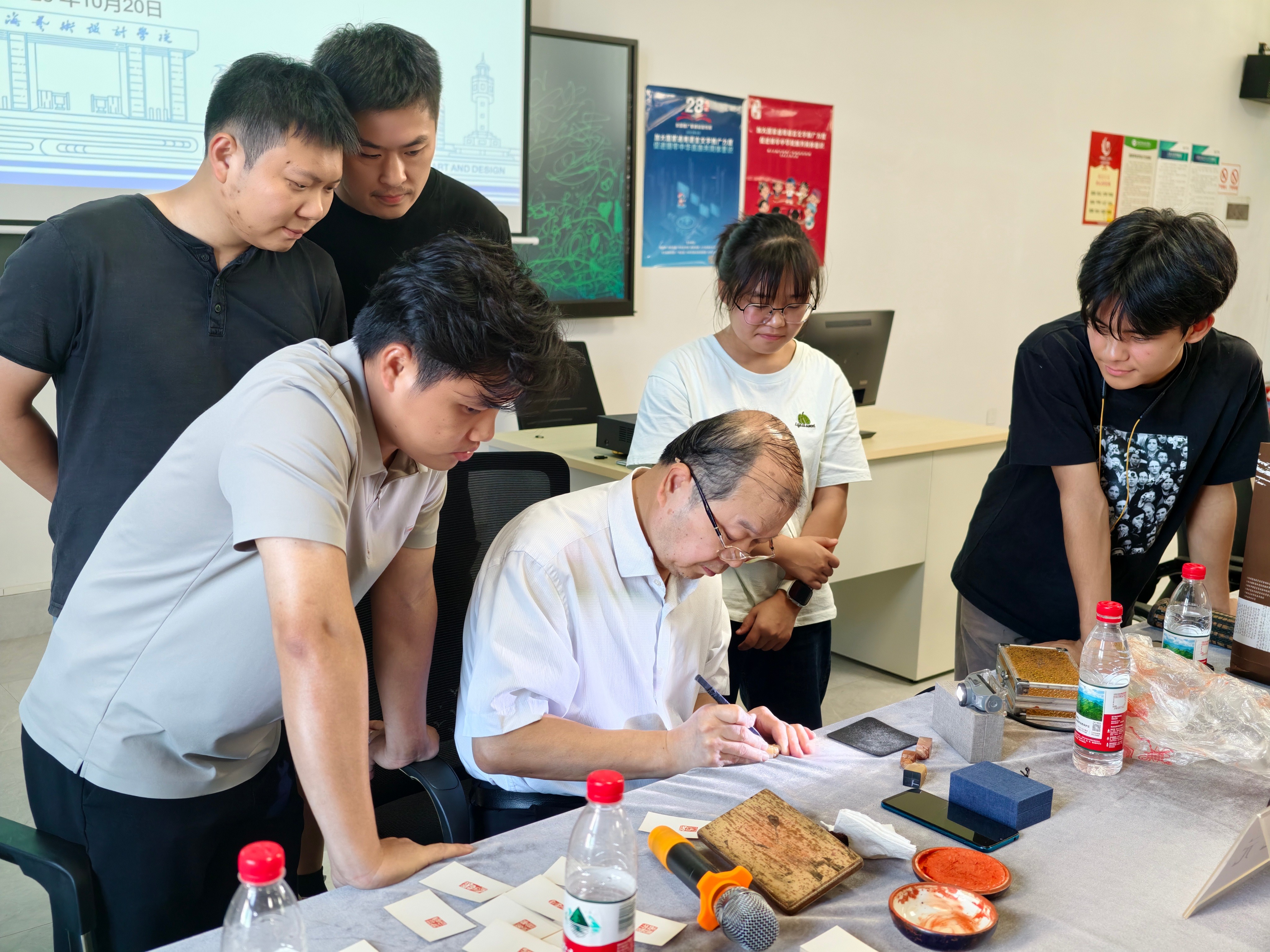 活动尾声,谢纪元副院长现场示范篆刻技法,并寄语师生“书法篆刻不仅是技艺的传承,更是中华文化基因的延续。希望青年一代能以敬畏之心对待传统,以开放姿态拥抱时代,让这门传统艺术焕发新的生机。”次座谈通过理论与实践的双重启迪,为师生提供了深刻的学习体验。书法学院未来将深化与书画研究院的合作,以系列化学术活动深化传统艺术与现代教育的融合,致力于培养兼具文化底蕴与创新能力的复合型人才。张天赋、何保/摄)