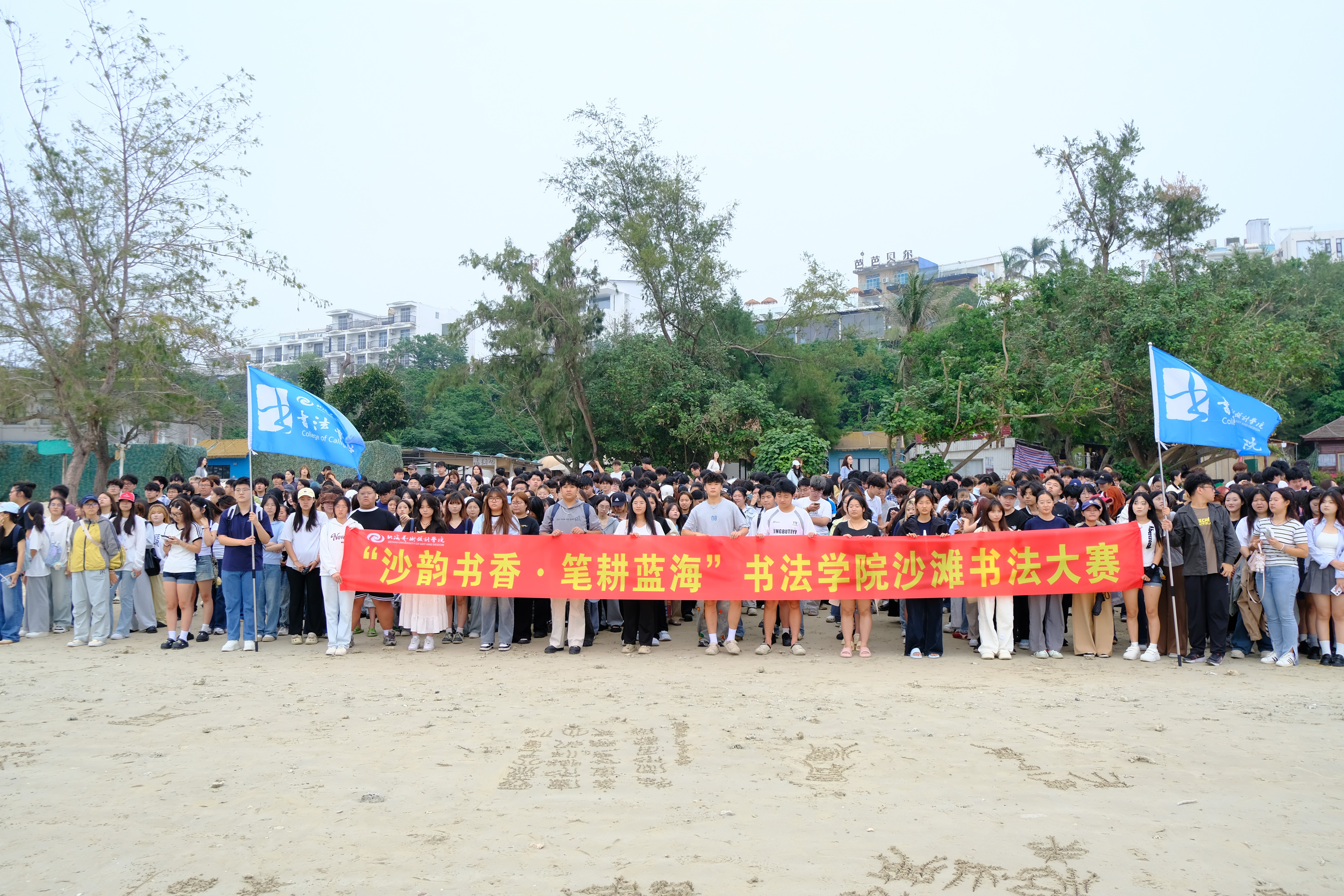 书法学院举办首届“沙韵书香・笔耕蓝海”沙滩书法大赛