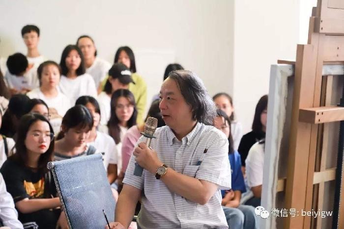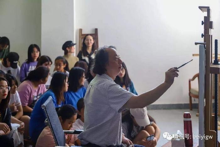 2019年10月19号上午8时,曲湘建教授莅临美术学院教学区,为美术学院同学上了一堂精彩的油画人物现场写生示范课。