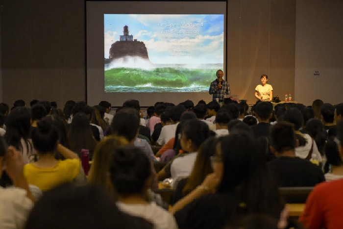 讲座开始,布瑞恩.K.史密斯老师首先对我校成斌院长,胡胜院长和郑超校长表示感谢,他自己表示非常荣幸到北艺这所好大学来为同学们讲座。布瑞恩.K.史密斯老师认为这世界上每个人都是独特的,因职业不同,每个人的感受都不同,世界上有很多的共同之处,所做的事情才是最重要的。他义正辞约的发言令同学们热情高涨。