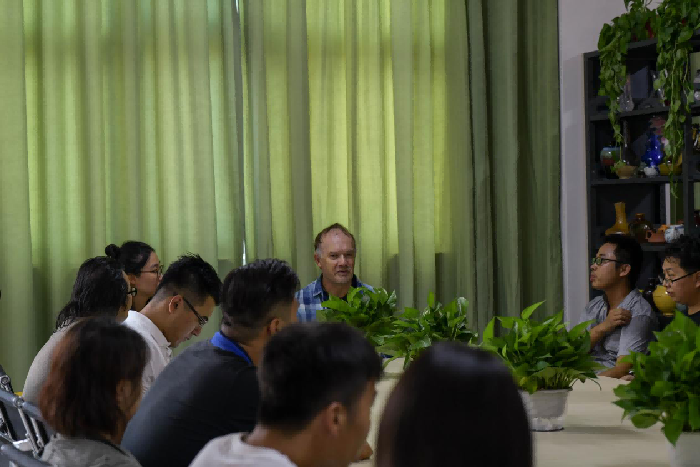 起始,成斌院长带领各位老师首先表示对史密斯先生的欢迎,并且史密斯先生也表示很荣幸能够来到我院交流经验。接下来,史密斯先生给各位老师讲述了他儿时第一次接触相机的缘由,并说了他一开始接触相机是黑白的,而且都在暗房里制作。他说第一次合成照片时的惊喜令他很难忘,也促使了他对摄影有更大的热情。他还告诉各位老师,要跟着感觉走,对工作要时刻保持着热情,同时介绍了有关于他家乡的风景。