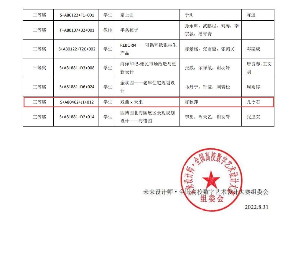 “全国总决赛”获奖名单如下: