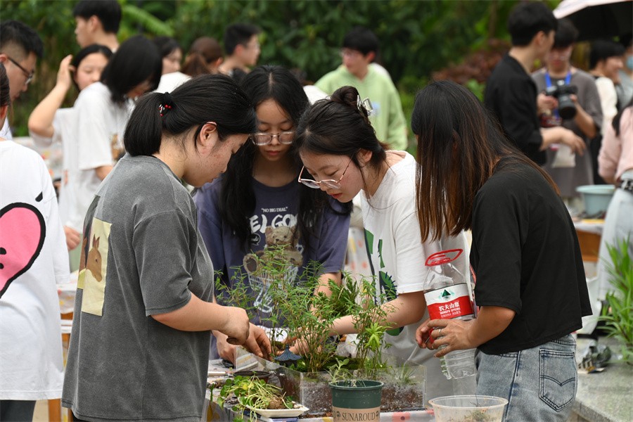 此次决赛的正式比赛时长为40分钟,要求参赛选手在规定的时间内制作出符合植物配置原则、具有美观性的优质微景观模型。决赛现场,各个参赛小组热火朝天、紧锣密鼓地制作小组微景观模型,充分展现专业应变能力和团结协作能力。