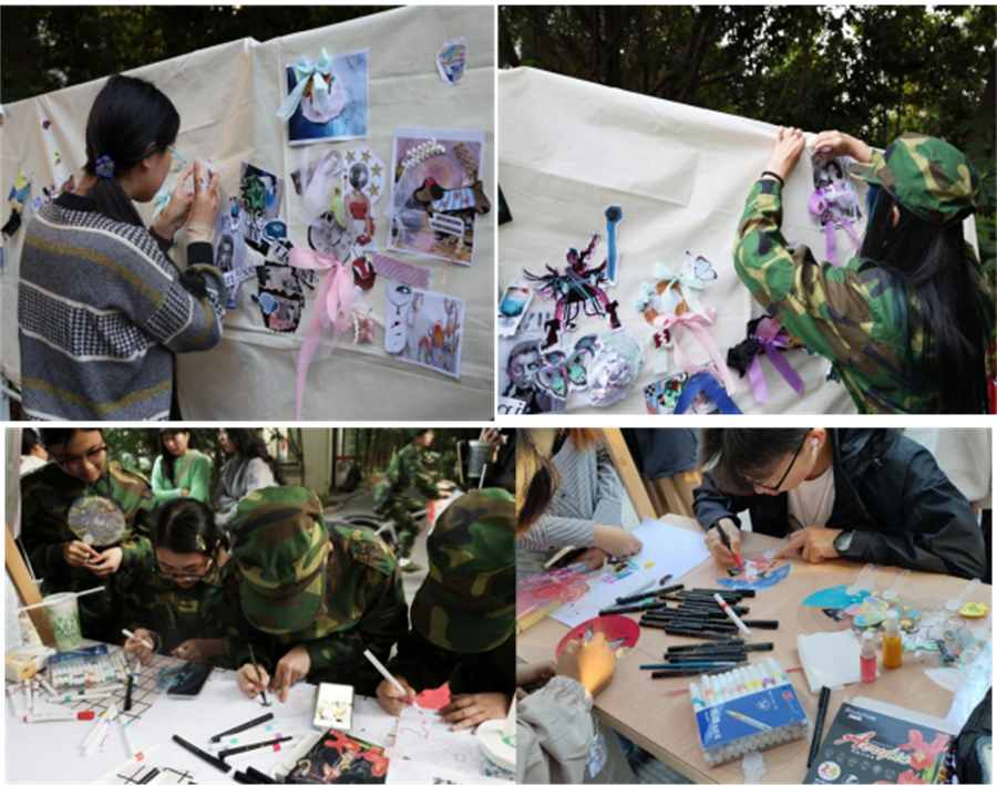 活动精心设置了情绪拼贴画和扇子DIY体验。在情绪拼贴画体验中,参与者通过拼贴创作,直观表达了个人的情感体验,深入探索了自我内心世界;扇子DIY则是让参与者将抽象的情绪转化为具体的图像,使情绪可视化,帮助大家更直观地理解自己的情感状态,进一步加深自我认知。活动现场,我校学子纷纷积极参与,气氛热烈。