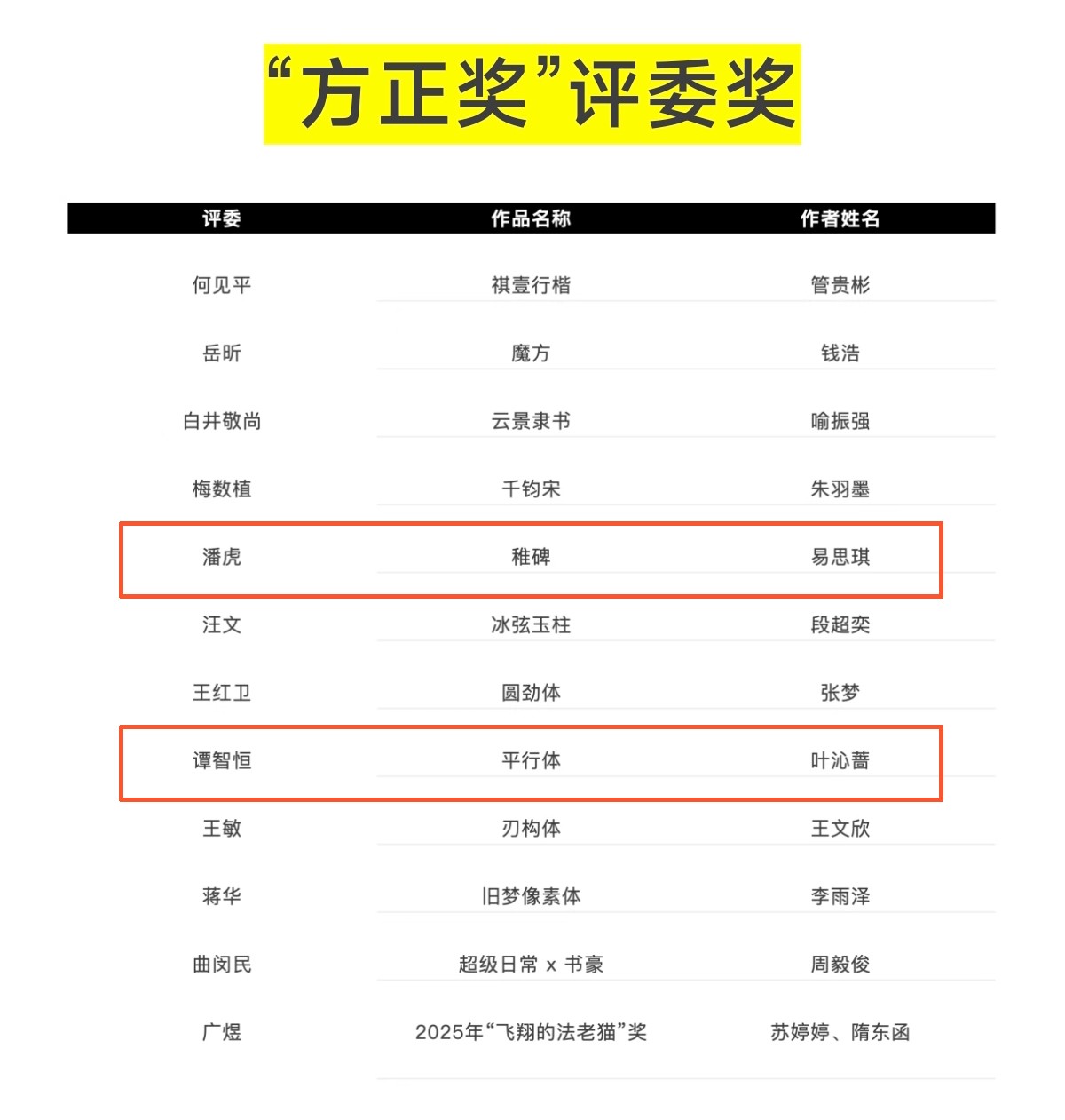 据悉,“方正奖”设计大赛创办于2001年,是国内首个字体设计专业赛事。历经25 年13届的积淀,该赛事已发展成为中国最具影响力的字体设计领域标杆赛事,成为检验高校设计教育质量、发掘新锐设计人才的重要平台。本届大赛自2024 年9月启动,设置字体设计与字体应用两大竞赛单元,涵盖七个竞赛组别,参赛者覆盖中国大陆、港澳台地区及海外多个国家,历时约十七个月完成作品征集与评审,最终仅有49件作品、8 位指导教师及12所院校获奖,竞争尤为激烈。