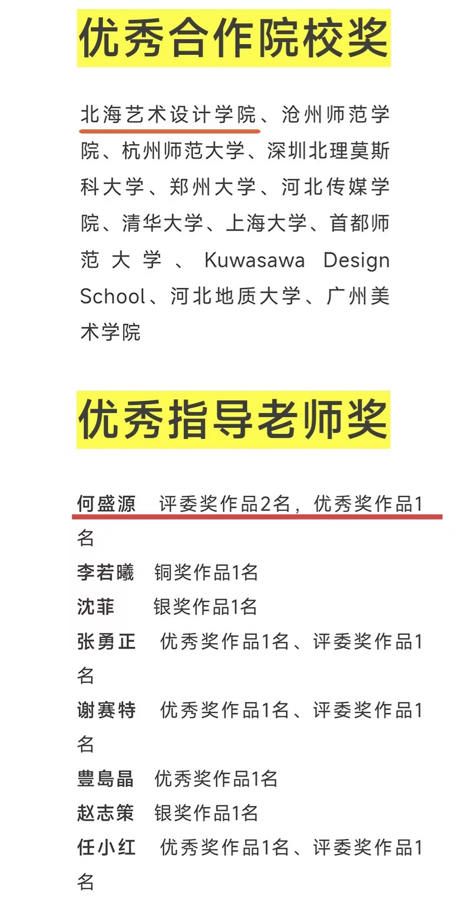 此次大赛首次设立优秀合作院校奖。我校成功入选优秀合作院校,与海内外12所知名院校共同获此殊荣;学校设计艺术学院青年教师何盛源获评优秀指导教师,跻身全国8位获奖教师之列,充分体现了赛事对我校设计教育成果的认可。