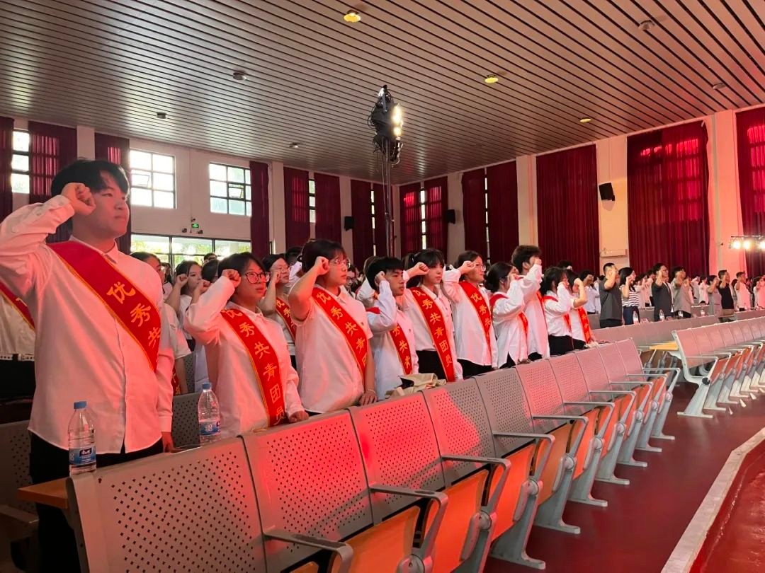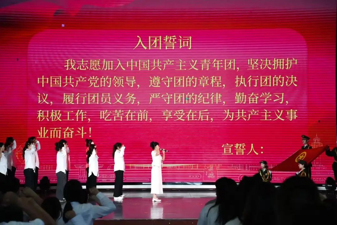 校团委副书记杨美琪带领新老团员共同重温入团誓词,铿锵的誓词在礼堂中激荡回响。